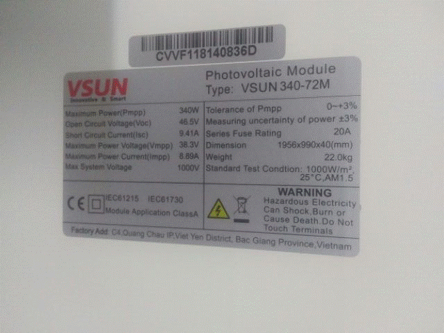 Trong điều kiện tiêu chuẩn, bức xạ mặt trời là 1000W/m2, áp suất khí quyển 1.5AM, nhiệt độ môi trường là 25 độ C.
